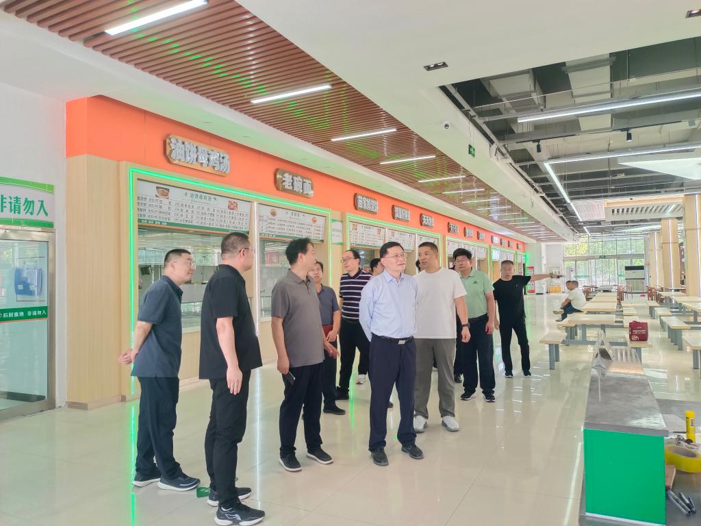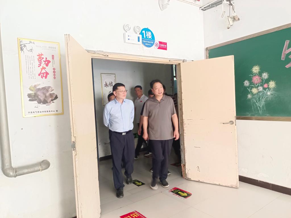 为确保新学期开学工作平稳有序,全面筑牢校园安全防线,9月2日上午午,省教育厅党组成员、副厅长、省委教育工委委员(兼)刘林亚率督导组一行莅临我集团,对学院秋季学期开学准备工作进行实地检查和督导,省教育厅教师处处长李松原等领导参加督导。学院党委副书记、院长高远浩,工会主席张贵军,副院长朱东煜、贾楠,许昌市教育局党组书记、局长刘庆及学院相关职能部门负责人陪同检查。