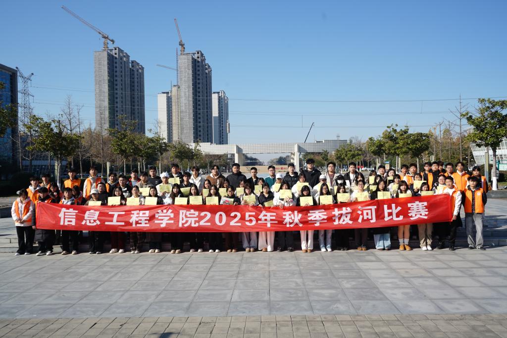 秋风送爽,激情飞扬。为丰富学生校园文化生活,提升班级集体凝聚力与团队协作素养,培育同学们勇于挑战、奋勇向前的优良品质。信息工程学院于2025年11月12日至13日在学校西广场举办拔河比赛。各班级代表队以绳聚力,用顽强意志与默契配合,为秋日校园增添了一抹炽热的亮色。