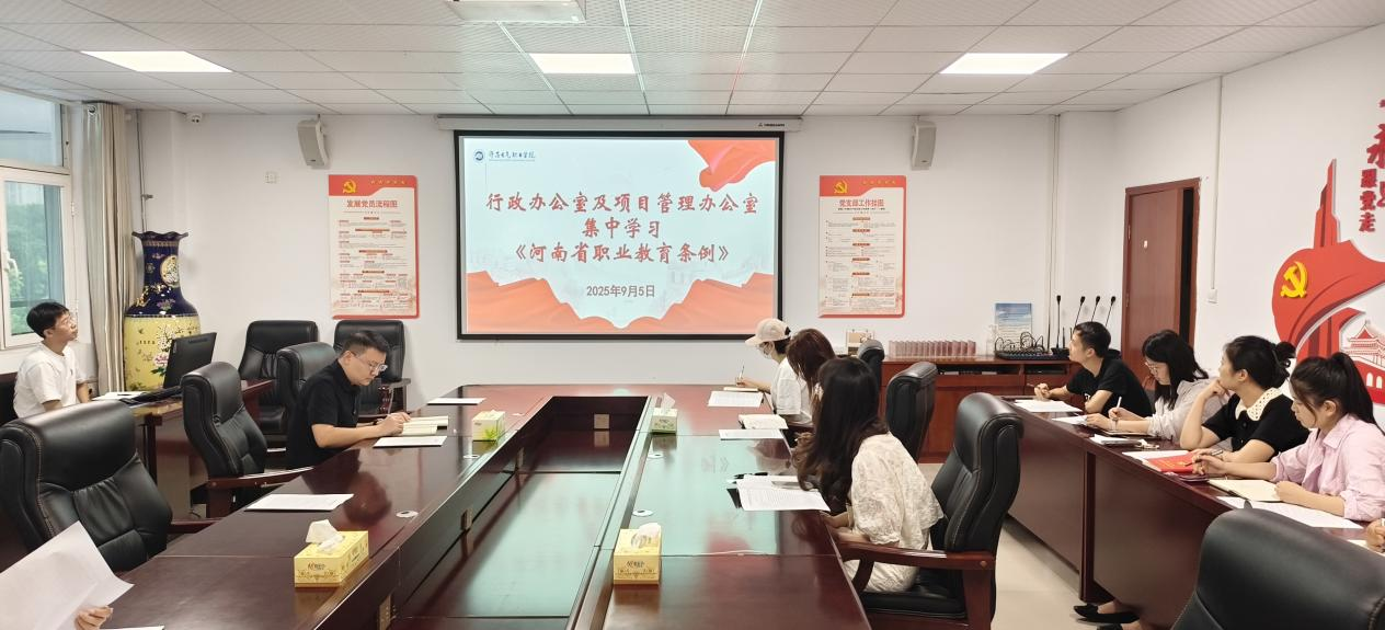9月5日,支部聚焦职业教育法治建设核心,组织全体党员开展《河南省职业教育条例》(以下简称《条例》)专题学习会。支部书记楚英英以“学条例、明职责、促发展”为核心,结合学校行政办公、服务保障等工作实际,从“构建现代职业教育体系”“深化校企协同育人”“强化政策保障支撑”“明确各方法律责任”四大关键维度,对《条例》条款进行系统解读与深度剖析。学习中,党员们围绕“《条例》如何为学校办学治校提供法治遵循”“行政服务工作如何对接职业教育改革要求”等议题展开热烈研讨,深刻认识到《条例》不仅是规范职业教育办学行为、提升育人质量的“标尺”,更是推动产教深度融合、助力技能人才培养的“引擎”。通过此次专题学习,支部党员进一步夯实了职业教育法治理论基础,明晰了以法治思维优化行政服务、支撑学校发展的实践方向。