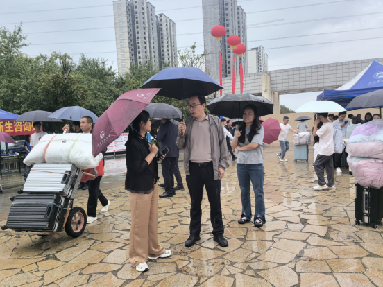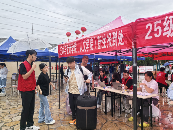 同时,学院自管会的志愿者们也积极投入到迎新的各项工作中。他们身着统一服装,穿梭在校园的各个角落,成为雨中一道亮丽的风景线。从新生踏入校园的那一刻起,志愿者们主动上前帮忙搬运行李,引导新生前往报到点办理入学手续,并耐心解答新生和家长们提出的各种问题,如校园环境、专业设置、生活设施等。在志愿者们热情周到的服务下,新生们迅速消除了初入校园的陌生感,顺利完成了入学报到。
